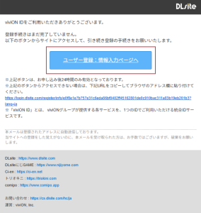 件名は [【viviON ID】ユーザー登録のご確認] です。