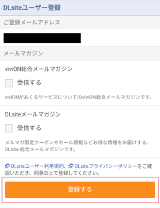 メールマガジンを受信するかを確認の上、 [登録する] ボタンをタップします。